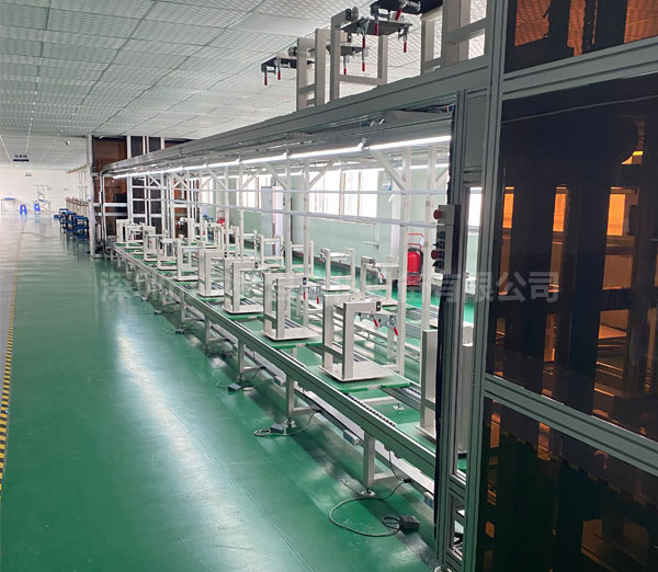 采用鋁板履帶式傳動(dòng),電氣采用PLC可編程序加變頻器,通過(guò)位置檢測(cè)傳感器和液晶顯示屏,真正實(shí)現(xiàn)裝配工藝的自動(dòng)控制,并可根據(jù)生產(chǎn)需要,調(diào)整參數(shù),人員的數(shù)量來(lái)控制產(chǎn)量,實(shí)現(xiàn)最大產(chǎn)能效率,流水線(xiàn)上方采用鋁合金支架,照明采用LED照明燈及LED防爆燈具(用于噴漆工位)及節(jié)能風(fēng)扇,符合國(guó)家節(jié)能減排綠色環(huán)保的要求,氣動(dòng)回動(dòng)采用不銹鋼管,采用進(jìn)口氣動(dòng)工具,保證工具可靠性,提高勞動(dòng)效率。